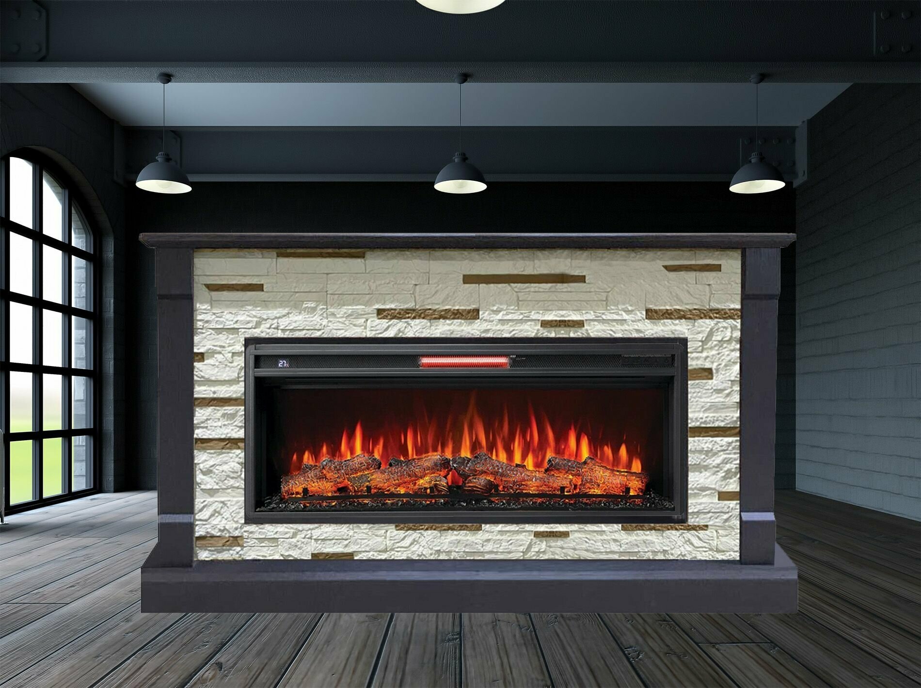 Линейный электрокамин FlameKamin Моника BL M1 с очагом Joker 45 (линейный электрический камин)