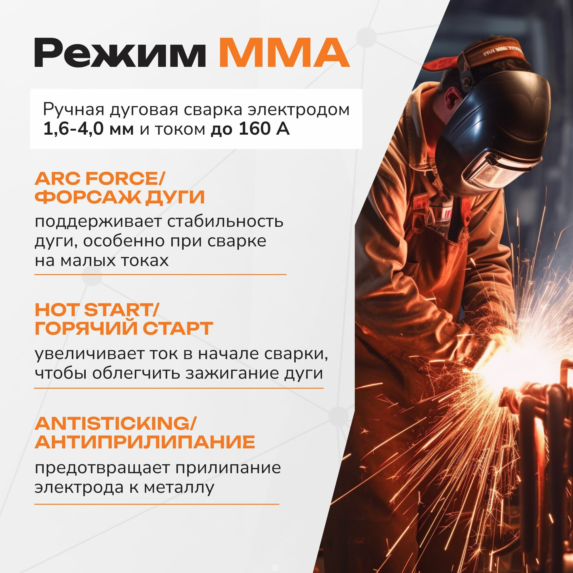 | Дополнительные функции | антиприлипание / горячий старт / форсаж дуги / функция VRD |