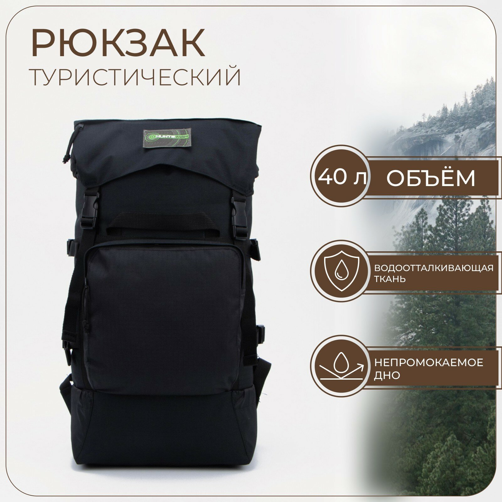 Huntsman Рюкзак туристический, 40 л, отдел на стяжке, 3 наружных кармана, цвет чёрный