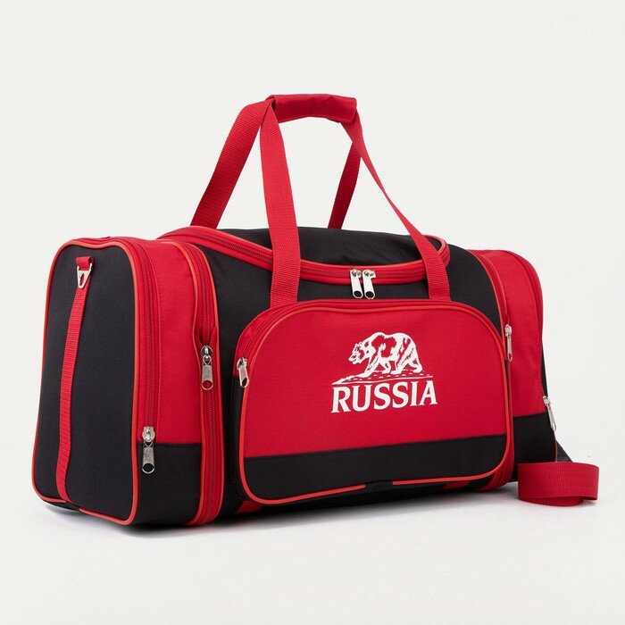 Зфтс Сумка дорожная на молнии, с увеличением, 2 наружных кармана, длинный ремень, цвет чёрный/красный интересное: