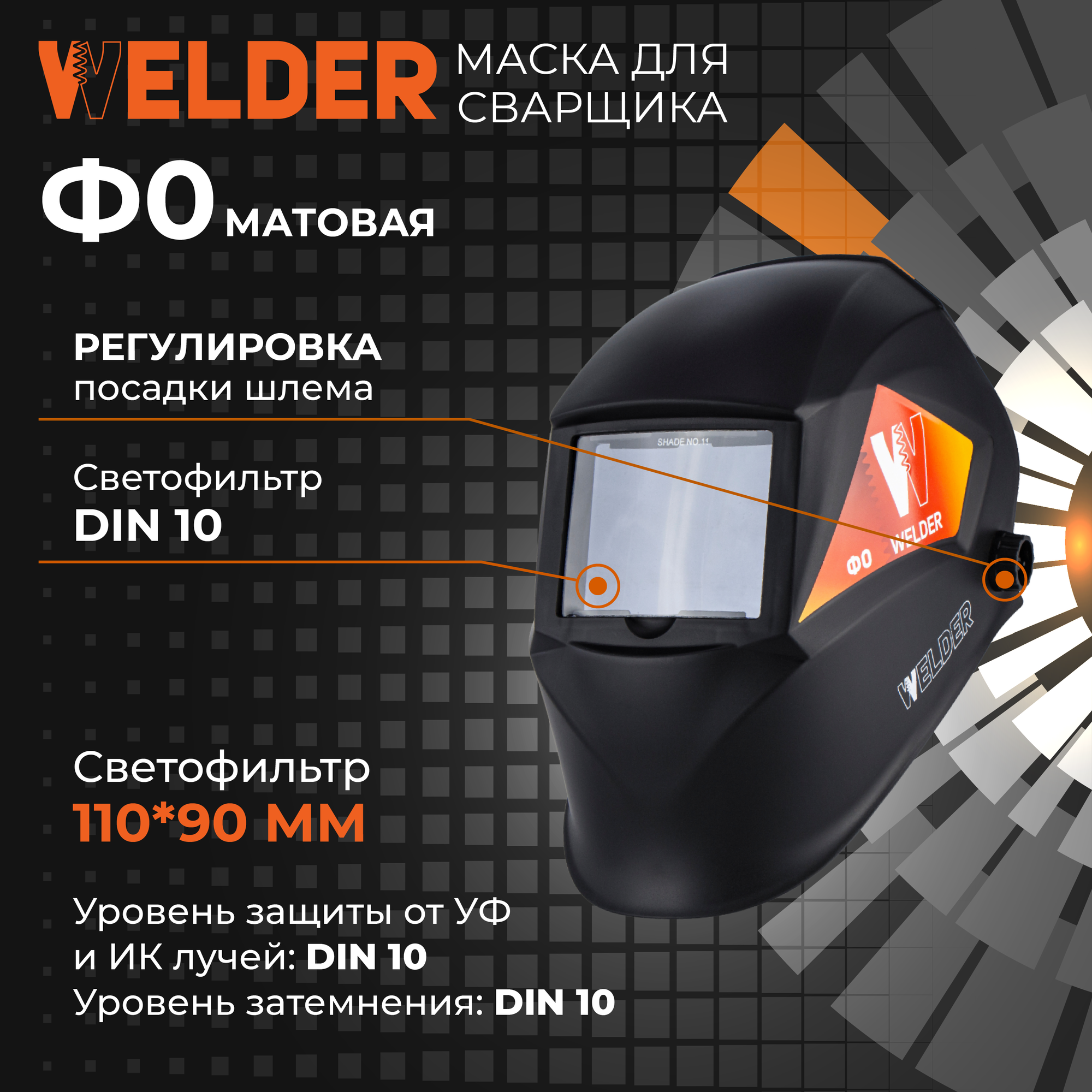 Купить Маска сварочная WELDER Ф0 Стекло 110x90 мм, матовая, в коробке