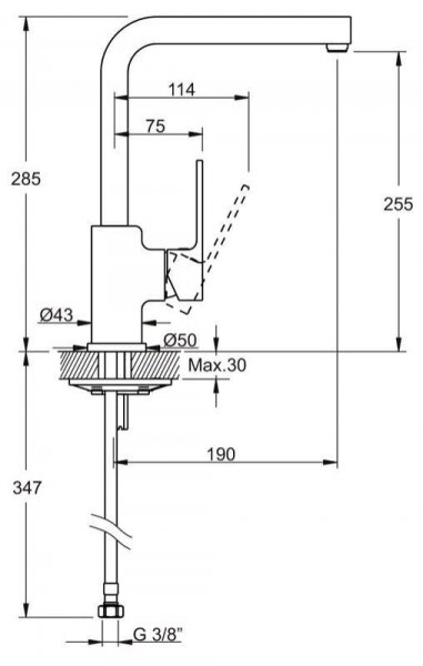 | Длина излива | 190 мм |