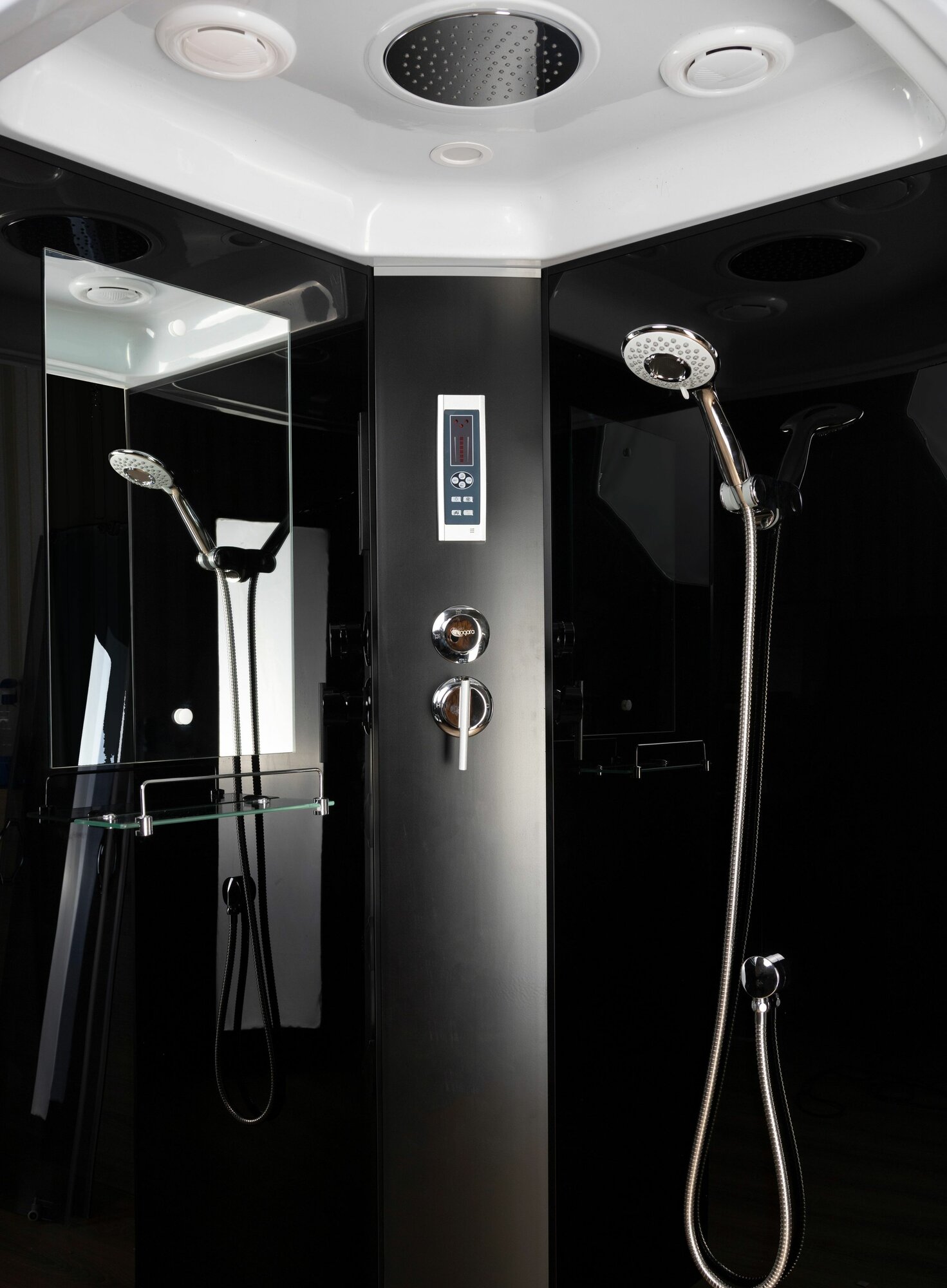 | Комплектация | душевая лейка, зеркало, поддон, полки, сиденье |