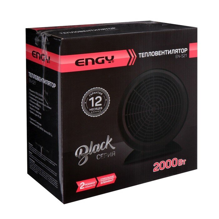 Тепловентилятор ENGY EN-521, 1000/2000 Вт, 2 режима, спиральный, до 25 м2, чёрный интересное: