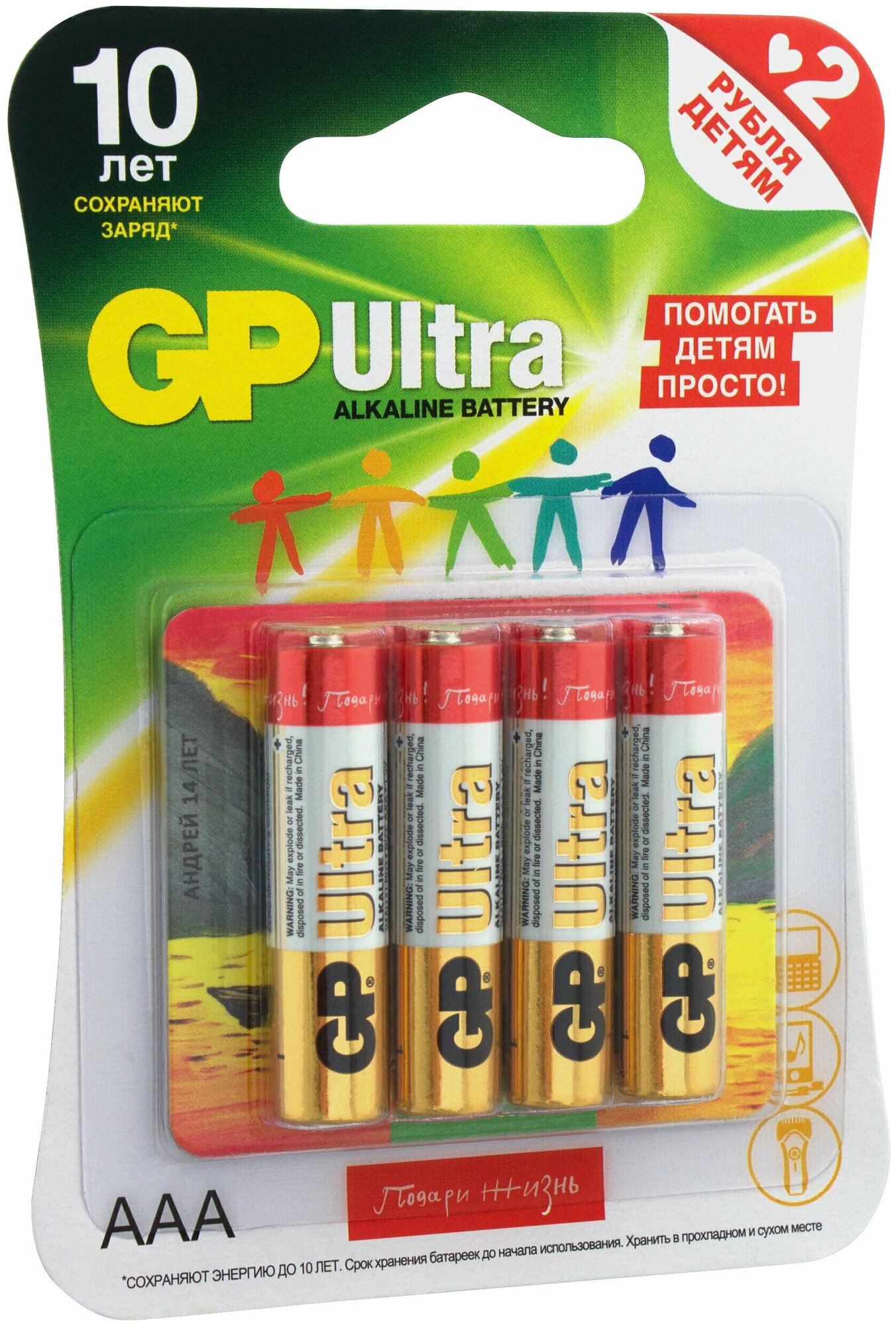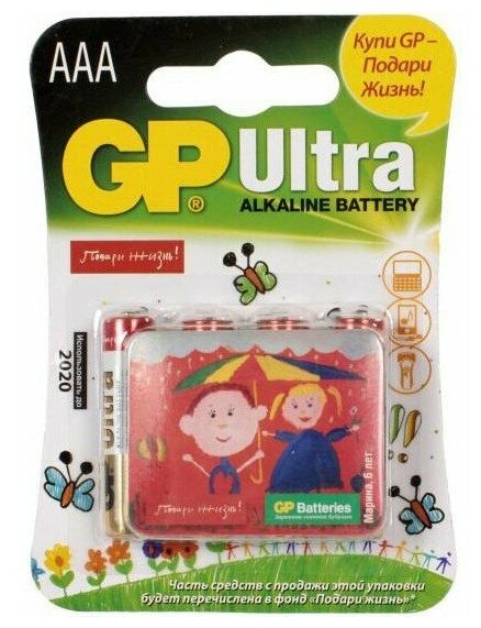 Батарейка GP Ultra Alkaline 24AUGLNEW LR03 AAA Подари жизнь! (4шт.)