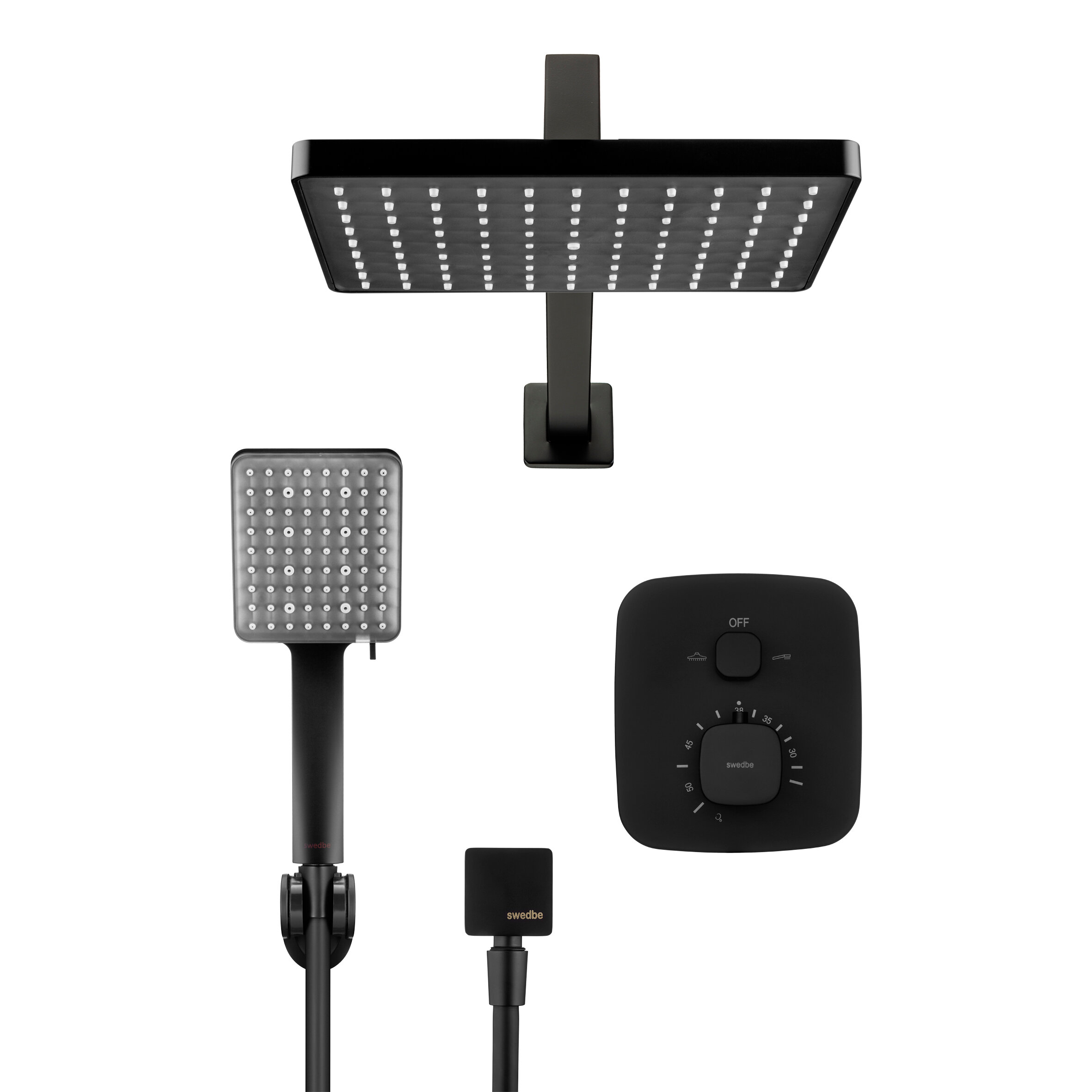 Душевой комплект со встраиваемым термостатическим смесителем (с монтажным боксом) и верхним душем Swedbe Platta 5565B интересное: