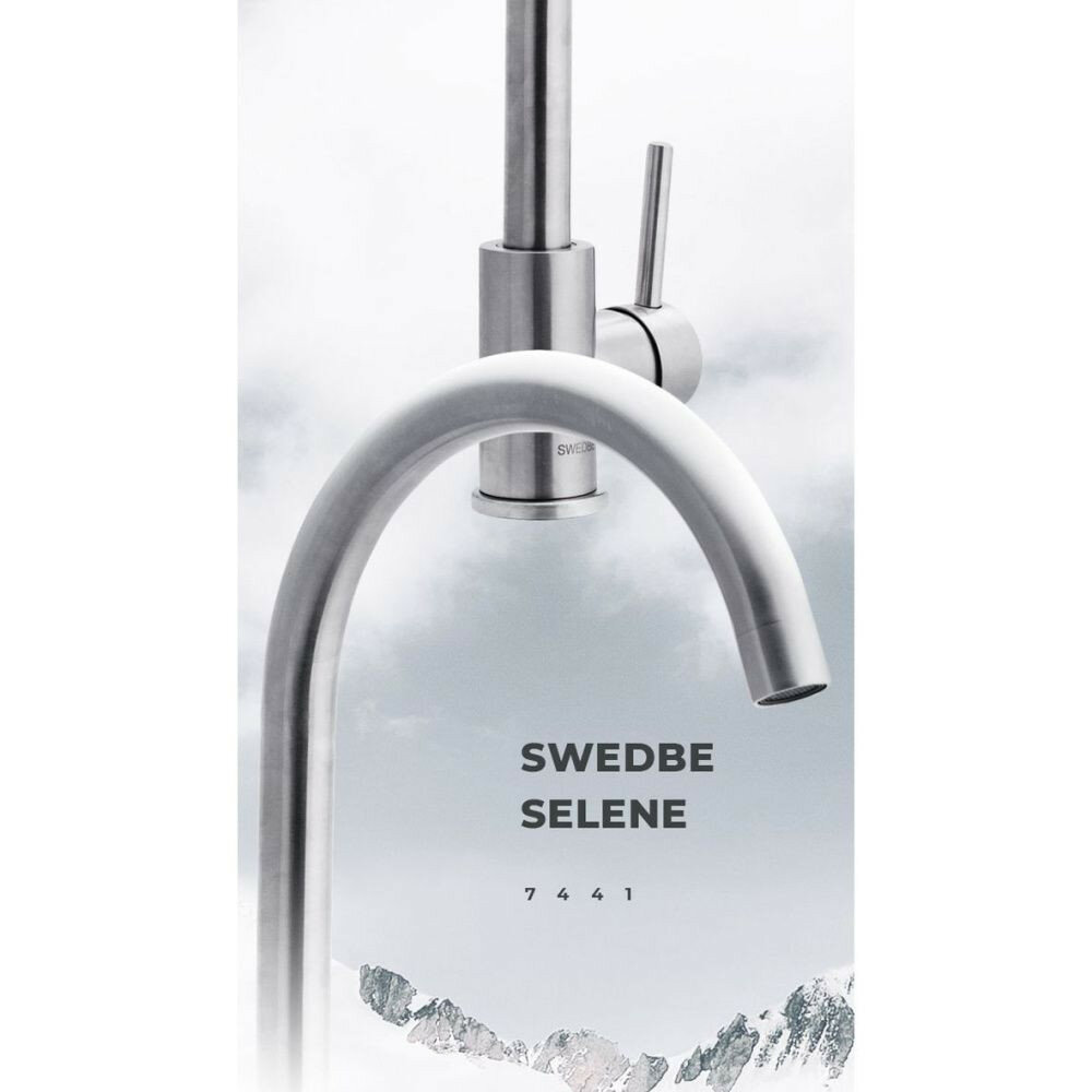 Смеситель Swedbe Selene для кухни поворотный излив, нерж сталь 7441