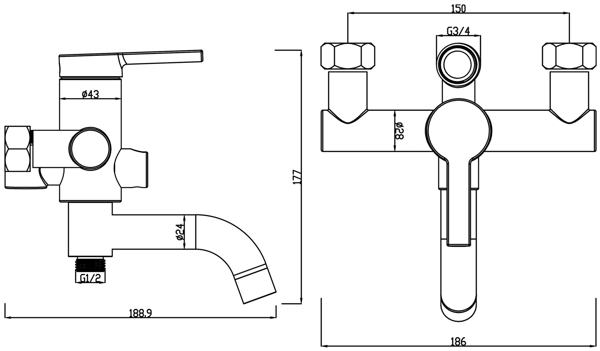 Семейный душ со смесителем для ванны Swedbe Hermes