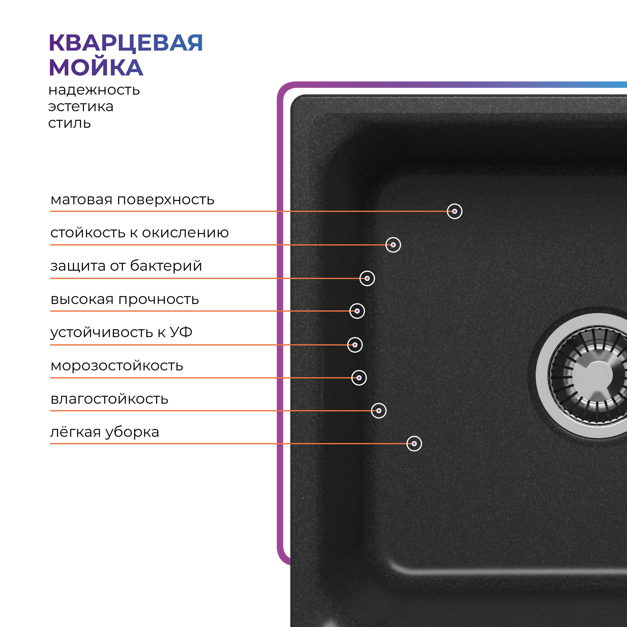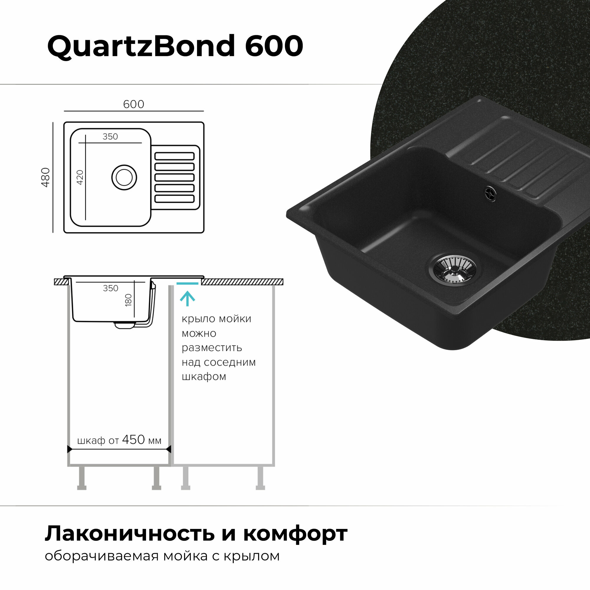 QuartzBond BOND-600, мойка, гранит, уголь