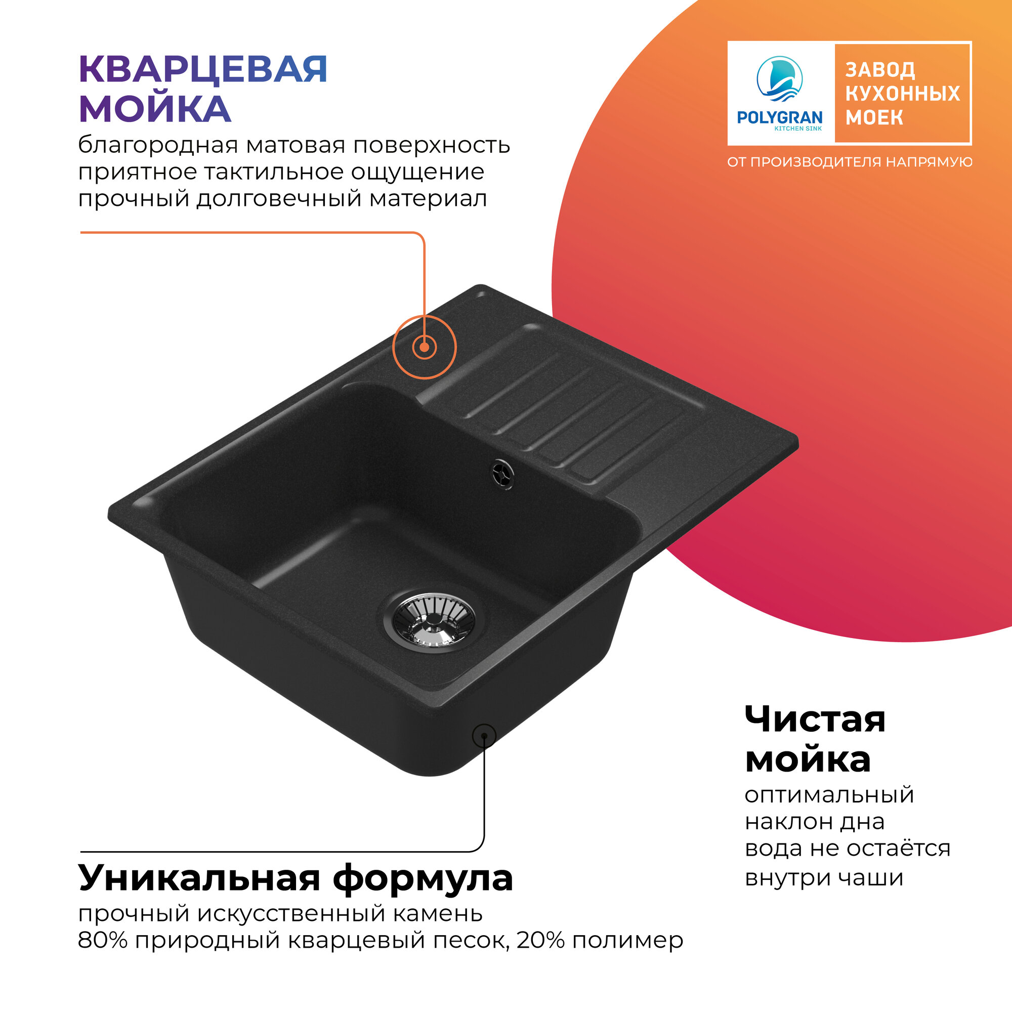 Кухонная мойка Polygran Quartz Bond 600 уголь