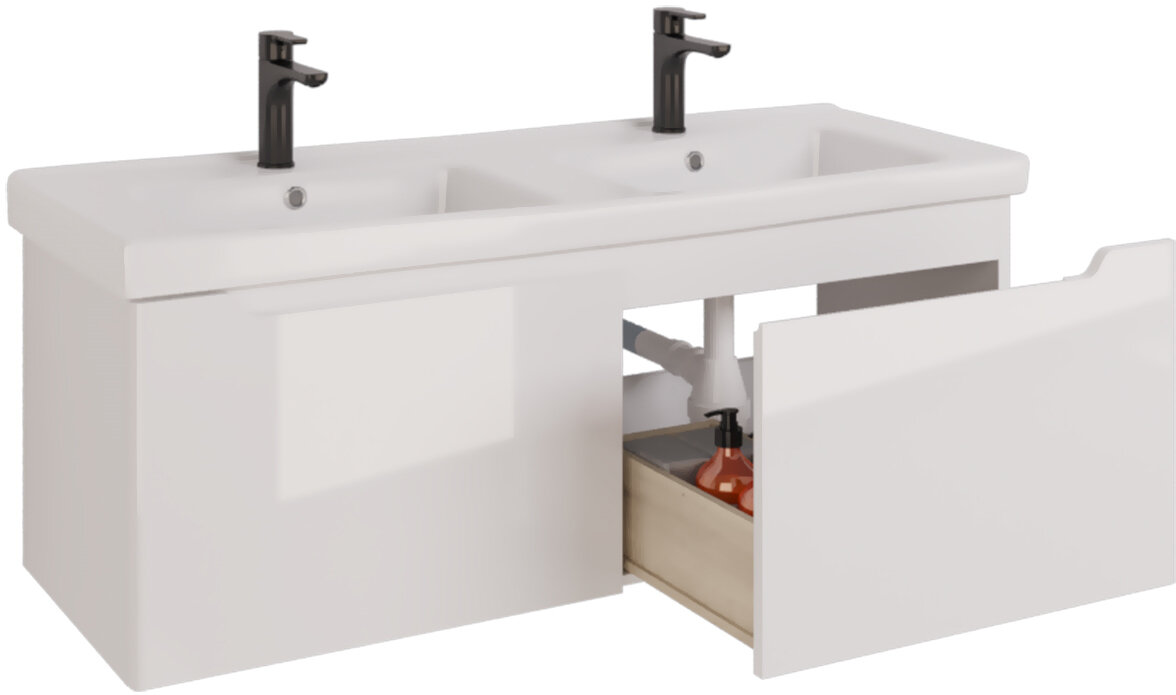 Тумба с раковиной Dreja W 125 двойная белый глянец интересное: