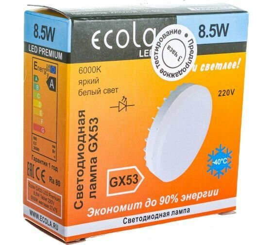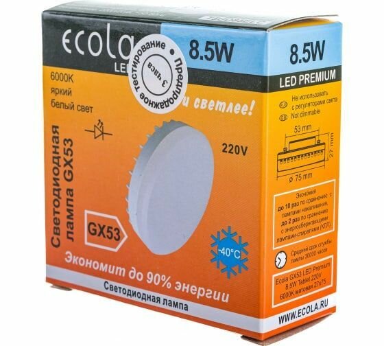 Ecola GX53 св/д 8.5W (8W) 6000K 6K 27x75 матов. Premium T5UD85ELC