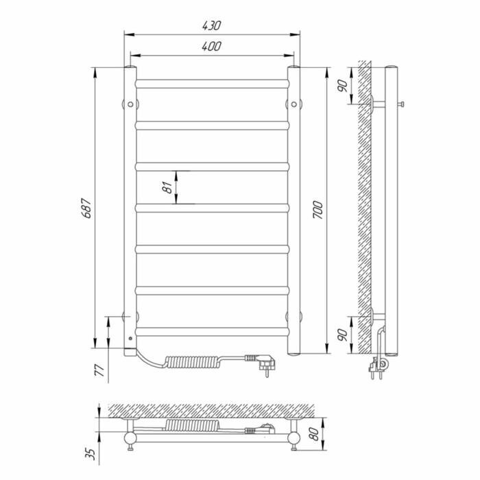 Полотенцесушитель электрический Laris Джаз П7 400х700 левое подключение интересное: