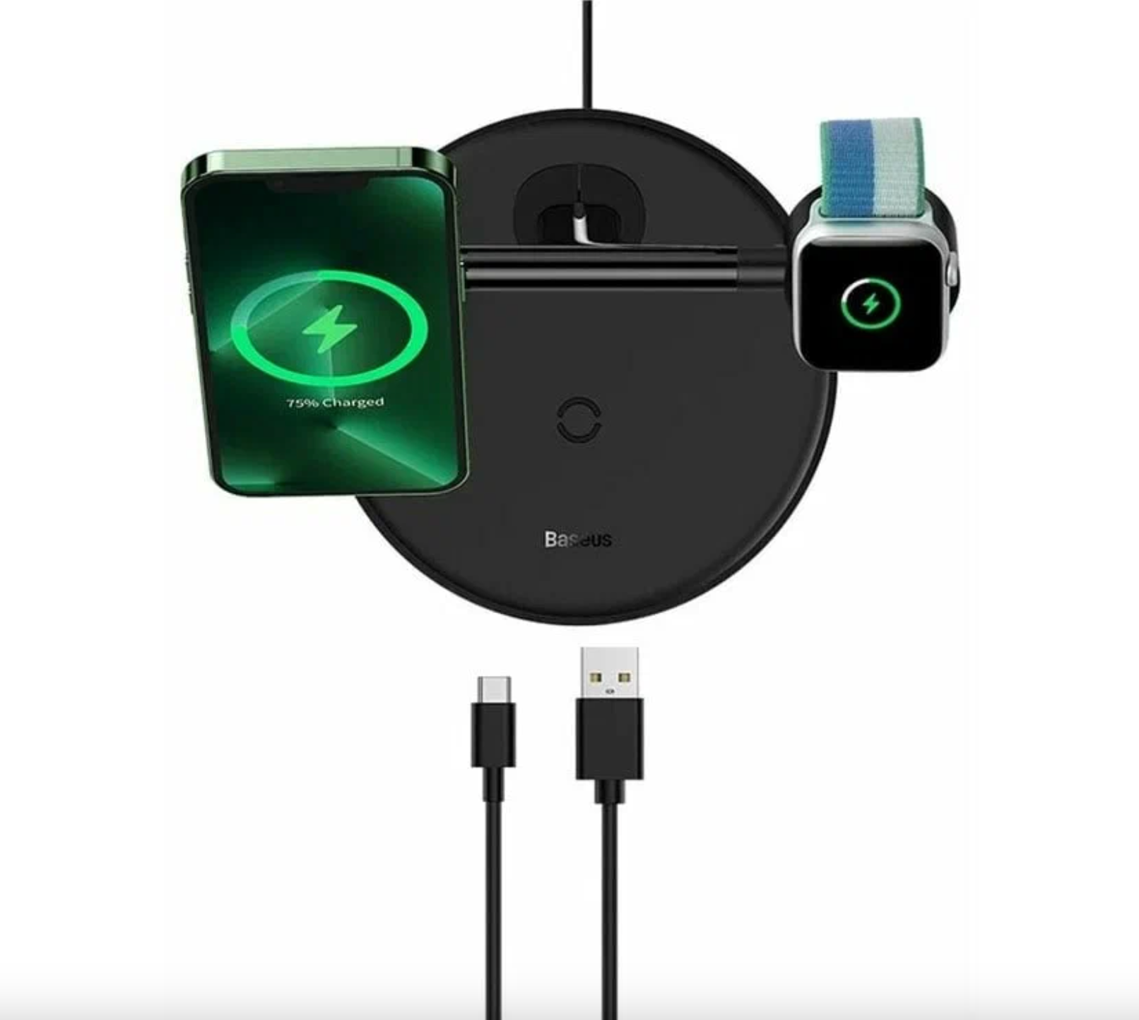 Baseus Беспроводное зарядное устройство Baseus Swan 3-in-1 Wireless Magnetic Charging Bracket 20W Universal version кабель USB For type-C 3A 1m Black WXTE000101