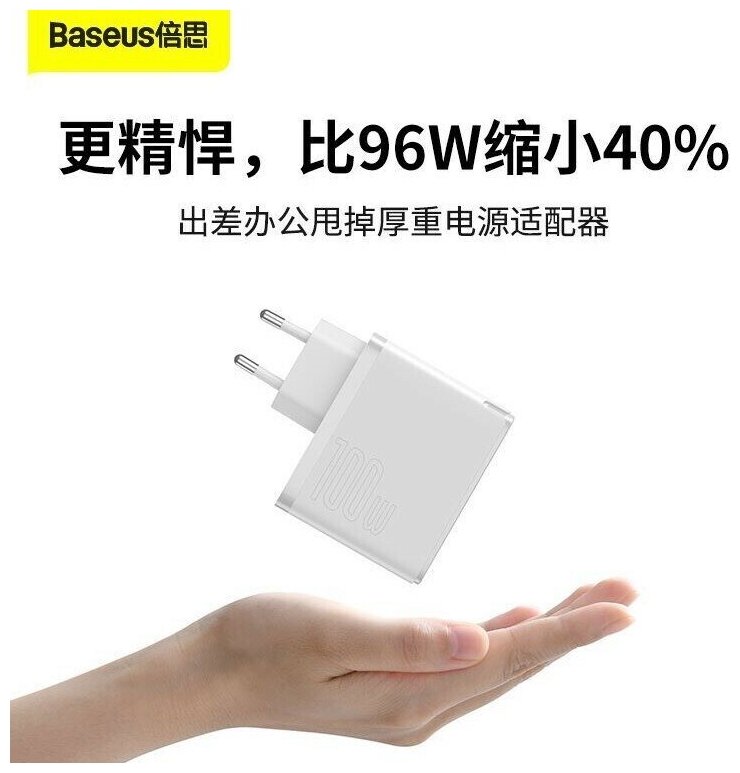 Зарядное устройство BASEUS GaN2 Fast Charger USB-C + Кабель Type-C-Type-C, 3A, 100W, белый, TZCCGAN-L02 интересное:
