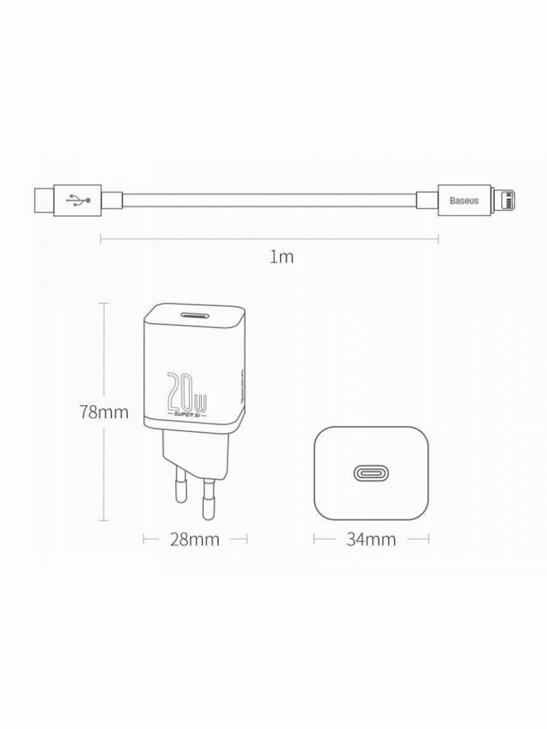 Зарядное устройство сетевое Type C 20W 3A Baseus для Apple, Android интересное: