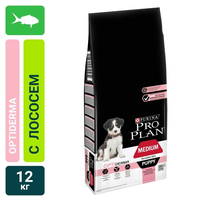 PRO PLAN OPTIDERMA PUPPY MEDIUM SENSITIVE SKIN для щенков средних пород с чувствительной кожей с лососем и рисом (12 кг)