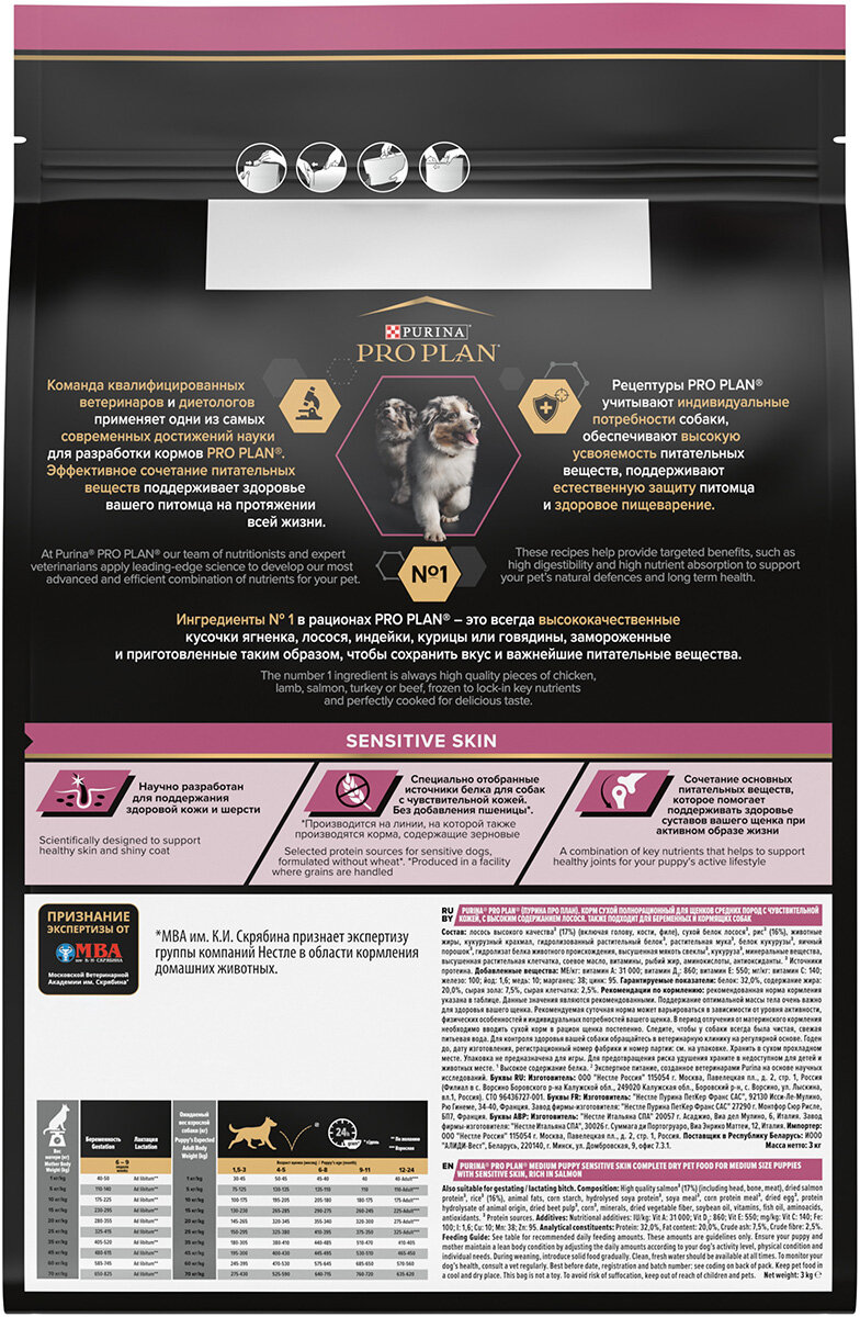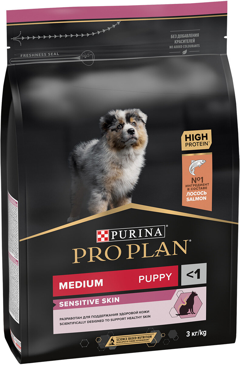 PRO PLAN PUPPY MEDIUM SENSITIVE SKIN для щенков средних пород с чувствительной кожей с лососем (3 + 3 кг)