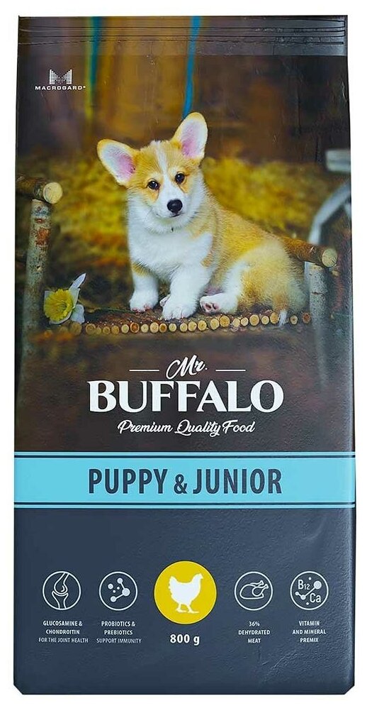 Mr. BUFFALO PUPPY & JUNIOR сухой корм для щенков и юниоров, курица, 800 гр.