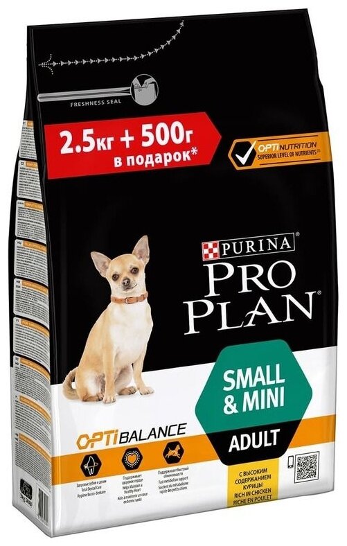 Purina Pro Plan Набор 2.5 кг+500 г в подарок Для взрослых собак малых пород с курицей и рисом (Small Mini Adult Chicken Rice) - 1236298812487977, 3 кг интересное: