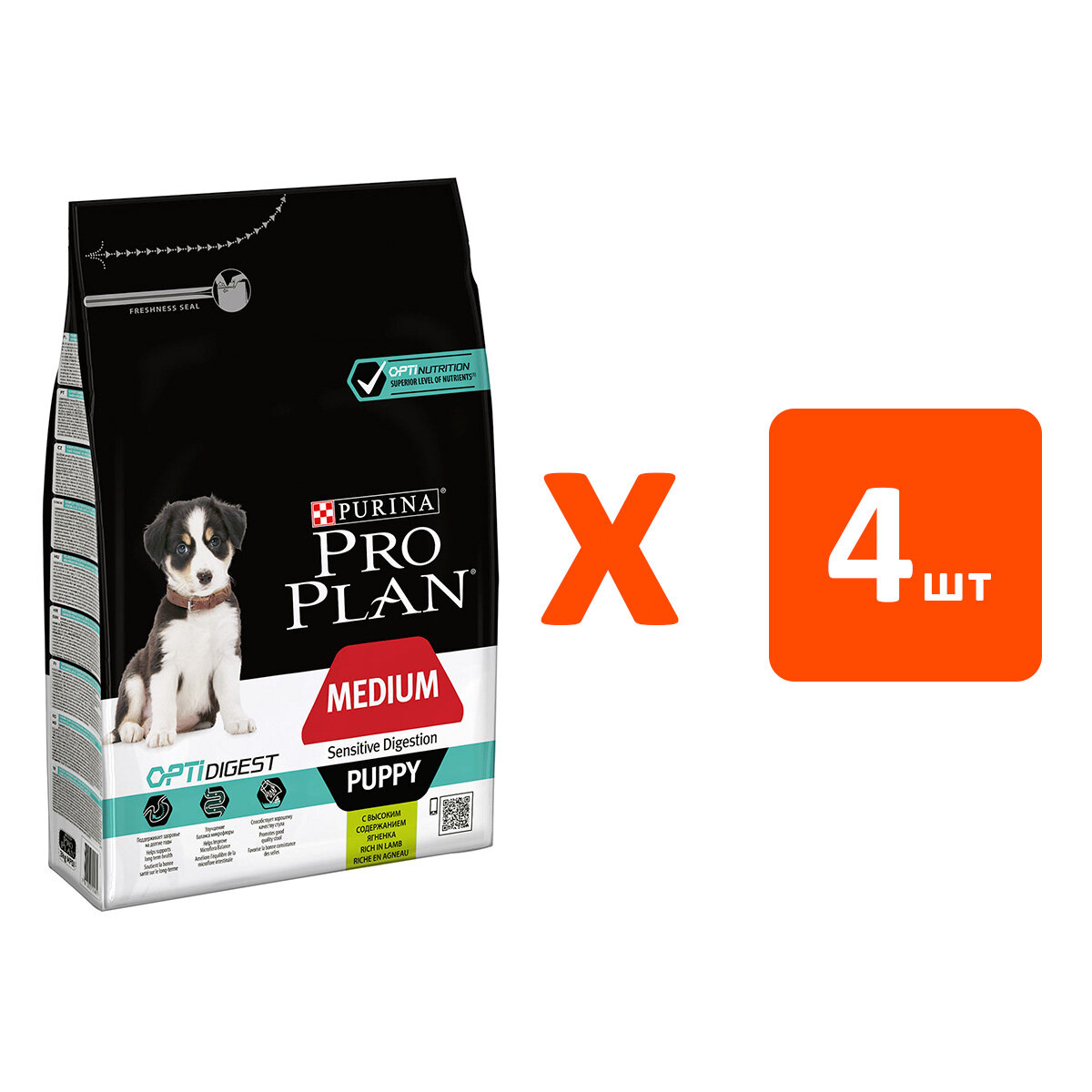Купить Сухой корм Pro Plan для щенков средних пород с чувствительным пищеварением, с высоким содержанием ягненка, Пакет, 3 кг х 4 шт