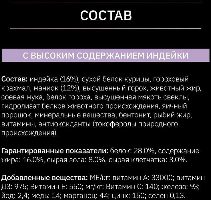 | Вкус | индейка |