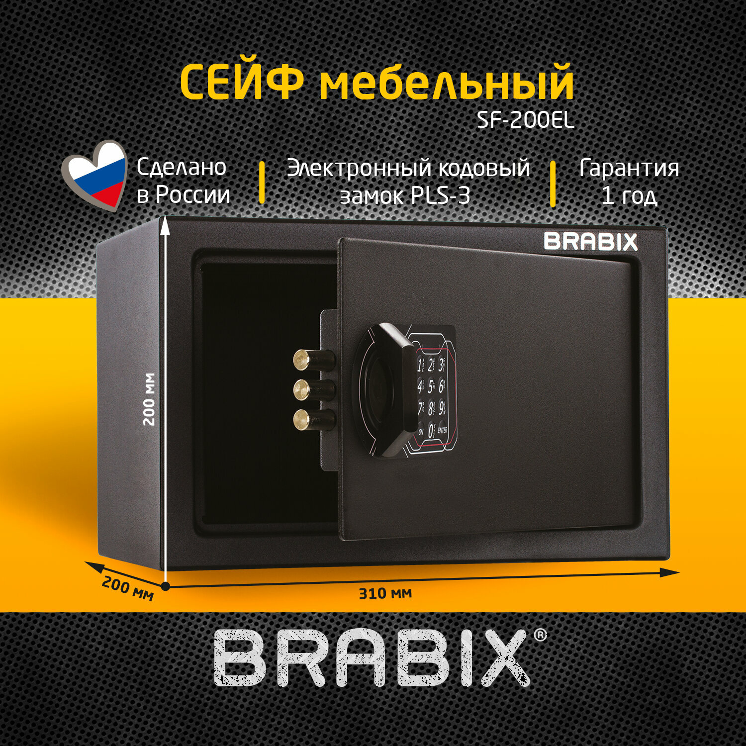 СохранитьСейф мебельный BRABIX SF-230EL, 230х310х250 мм, электронный замок, черный, 291147, S103BR211614 интересное: