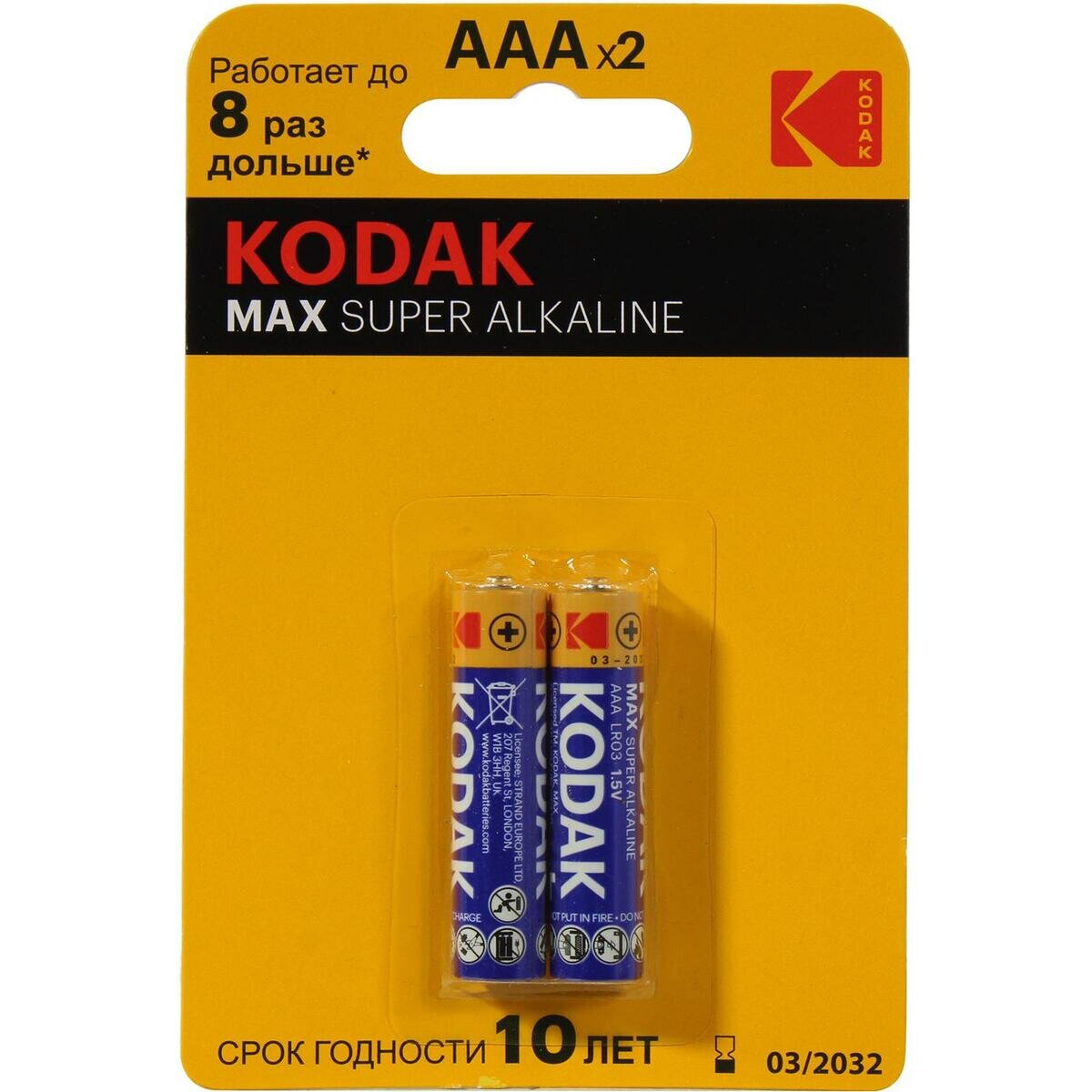 Батарейка алкалиновая Kodak Max, AAA, LR03-2BL, 1.5В, блистер, 2 шт., 2 штуки
