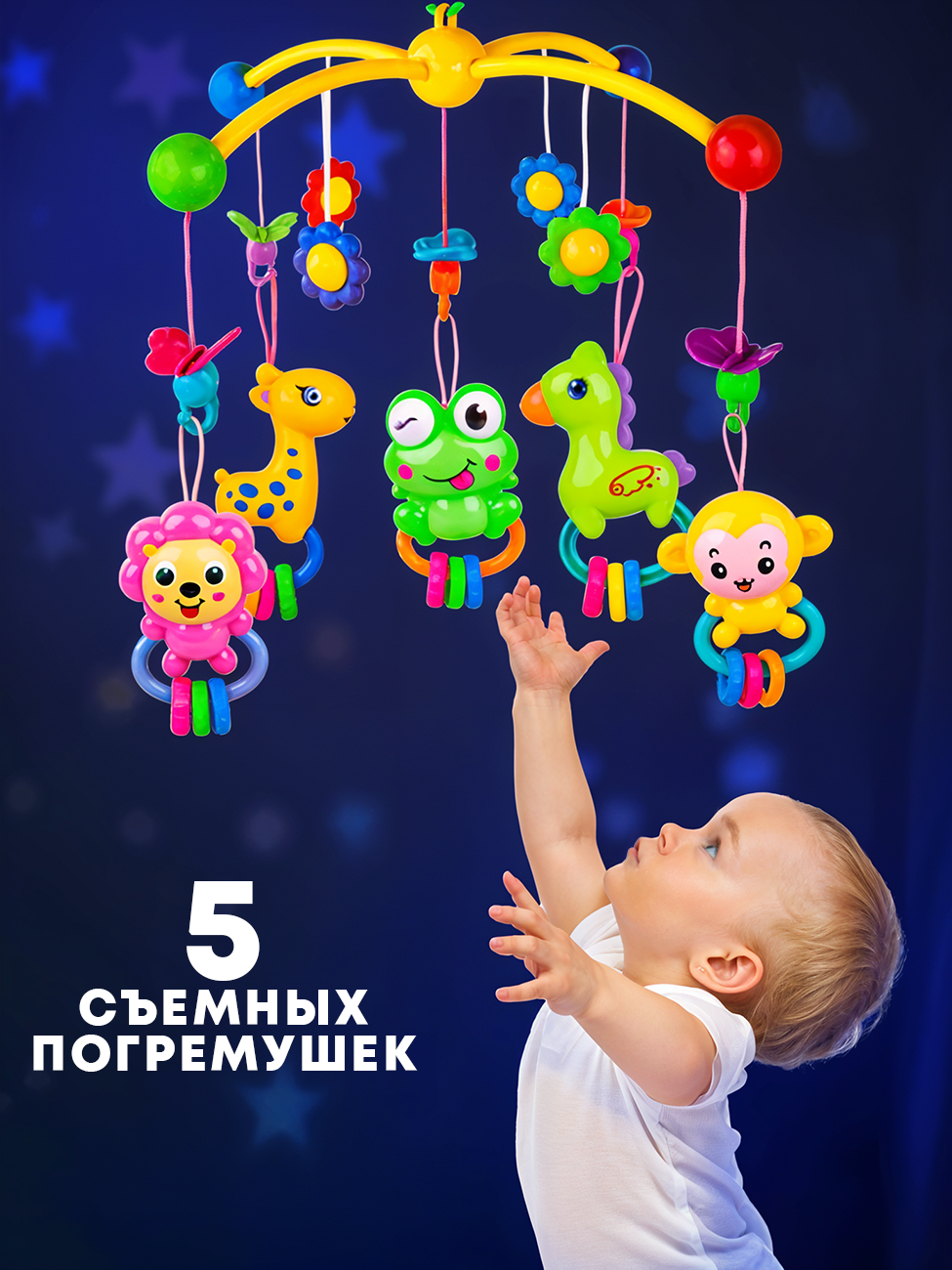 | Дополнительная информация | количество подвесных игрушек: 5; количество мелодий и звуков: 109; высота мобиля: 60 см; вес мобиля: 1.067 гр |