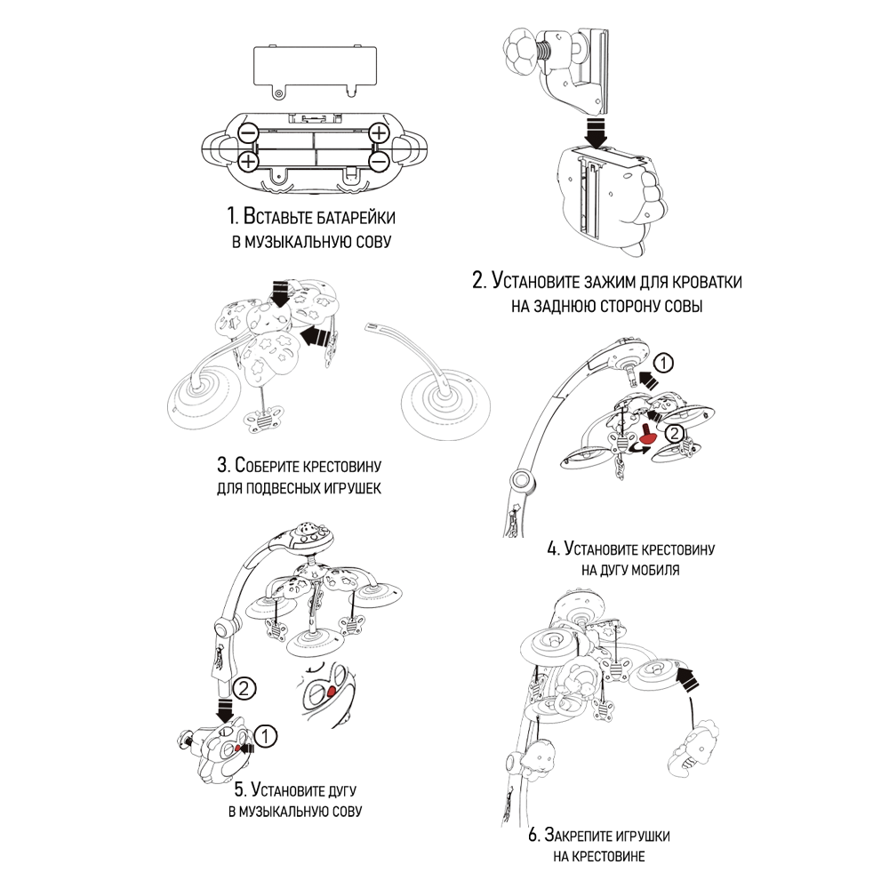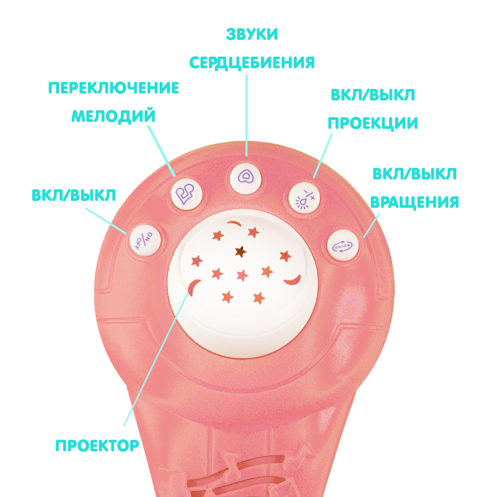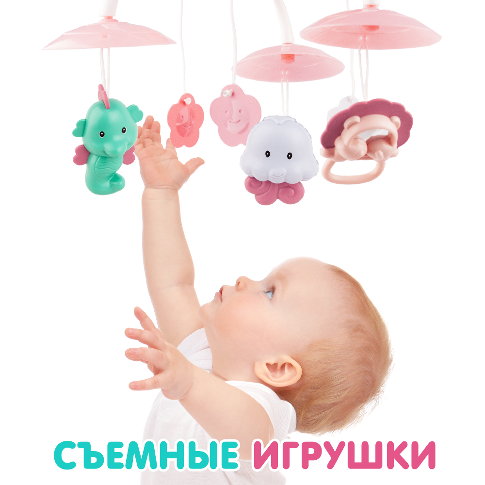 | Особенности | вращение игрушек / звуковые эффекты / зеркальце / ночник / проектор / световые эффекты / съемные игрушки |