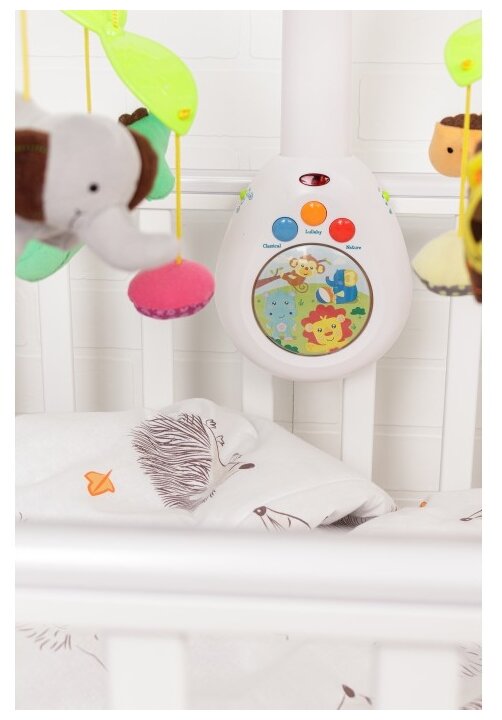 | Особенности | вращение игрушек / звуки природы / звуковые эффекты / ночник / пульт ДУ / регулировка громкости |
