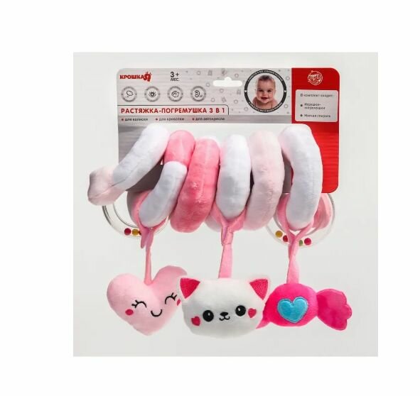Растяжка - спираль мягкая с погремушкой на кроватку/коляску «Маленькая принцесса», р-р 24-86 интересное: