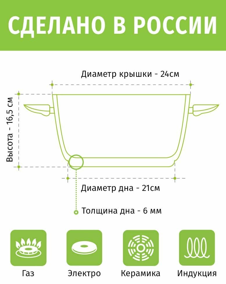| Дополнительная информация | трехслойное теплораспределительное дно (сталь-алюминий-сталь); материал крышки: сталь; материал ручек: сталь, крепление ручек: точечная сварка; ГОСТ 27002-86; марка стали: AISI 304, 18/10, 08Х18Н10 |