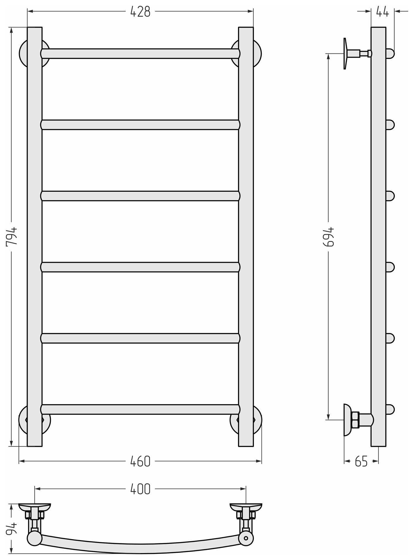 Полотенцесушитель водяной стилье "Версия-Н2" 800х400 (6) Г 18