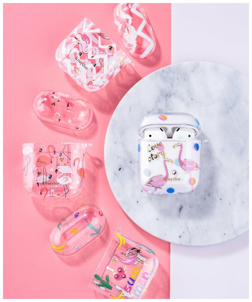 Чехол Kingxbar Flamingo для Apple Airpods Feather интересное: