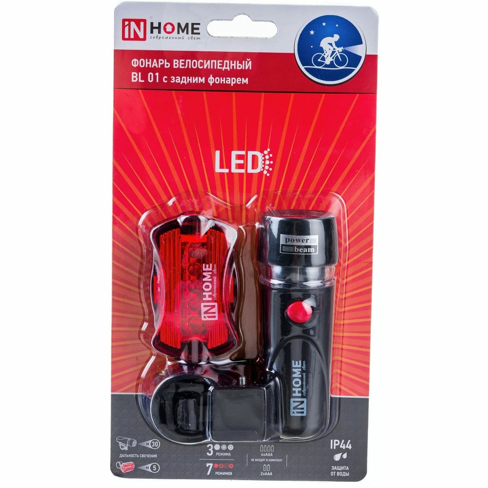 Купить IN HOME Фонарь вело BL 01 5LED с задним фонарем 4AAA 3 режима с кронштейном черный 4690612035192