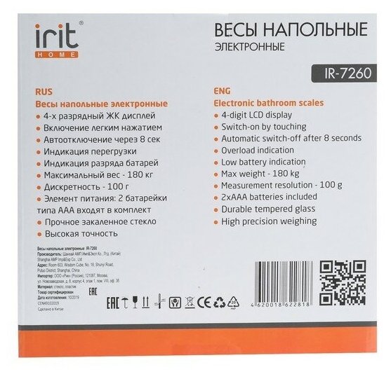 Весы бытовые напольные IRIT-7260 до 180кг d 100г интересное: