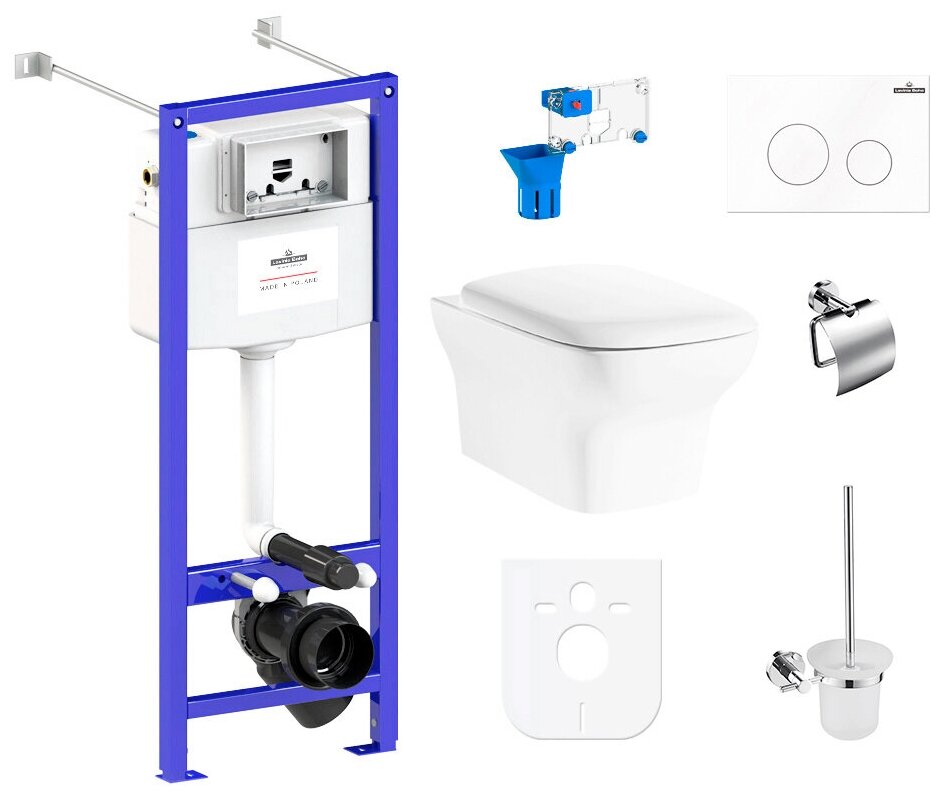 Купить Комплект 9 в 1 Lavinia Boho Bristol Rimless 97020173, безободковый унитаз, сиденье микролифт, инсталляция, клавиша смыва, набор аксессуаров