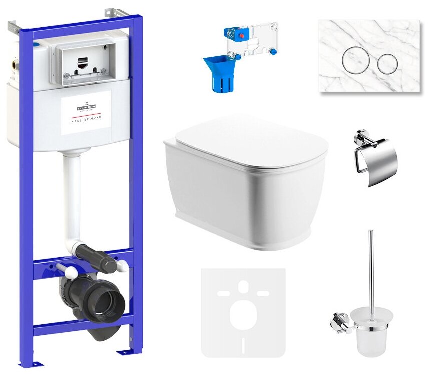 Купить Комплект 9 в 1 Lavinia Boho Bell Pro Rimless 75110289, безободковый унитаз, сиденье микролифт, инсталляция, клавиша смыва, набор аксессуаров