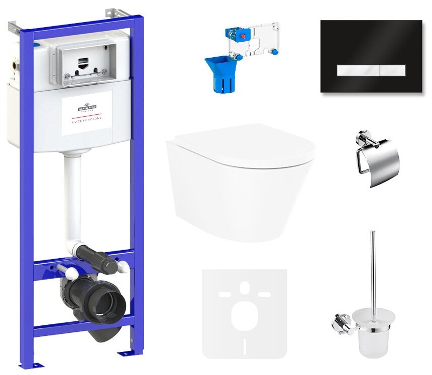 Комплект 9 в 1 Lavinia Boho Biore Compacto Rimless 75110347, безободковый унитаз, сиденье микролифт, инсталляция, клавиша смыва, набор аксессуаров интересное: