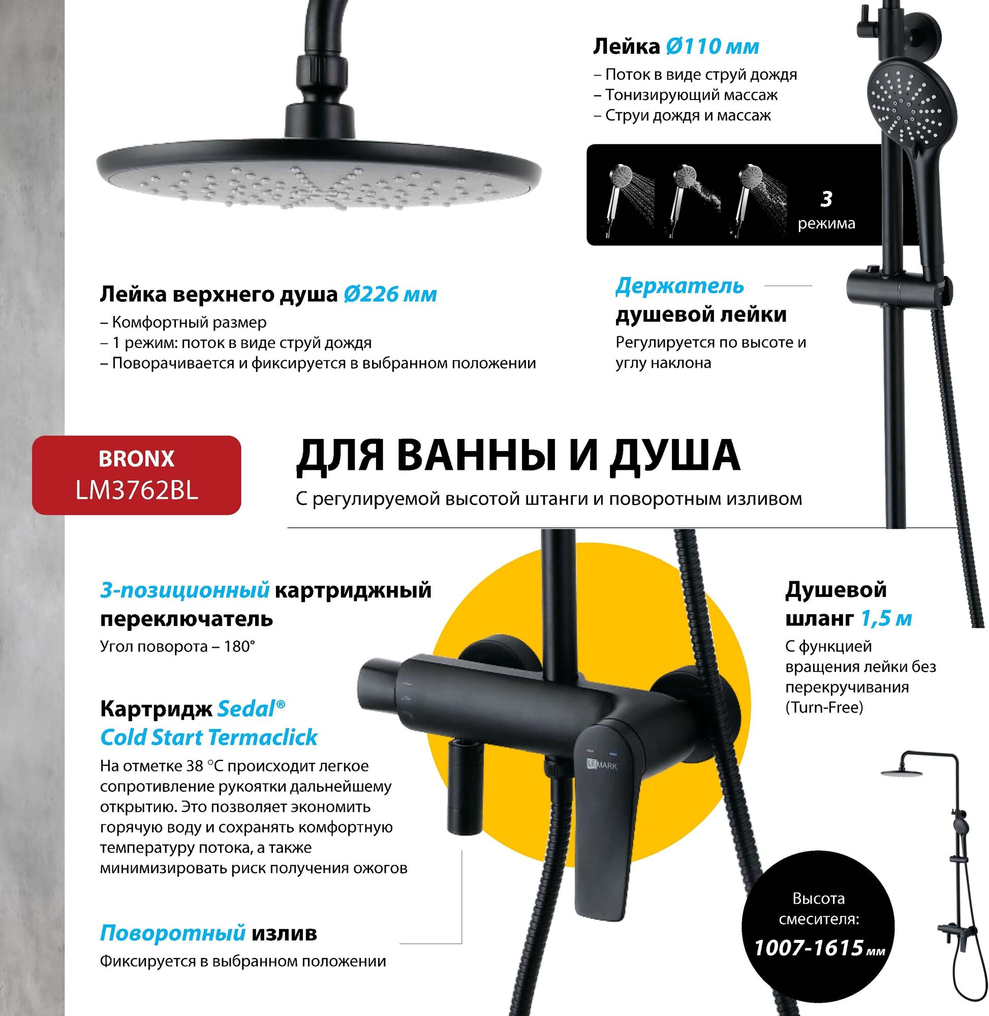 Душевой комлпект Lemark Bronx LM3762BL для душа с регулируемой высотой штанги