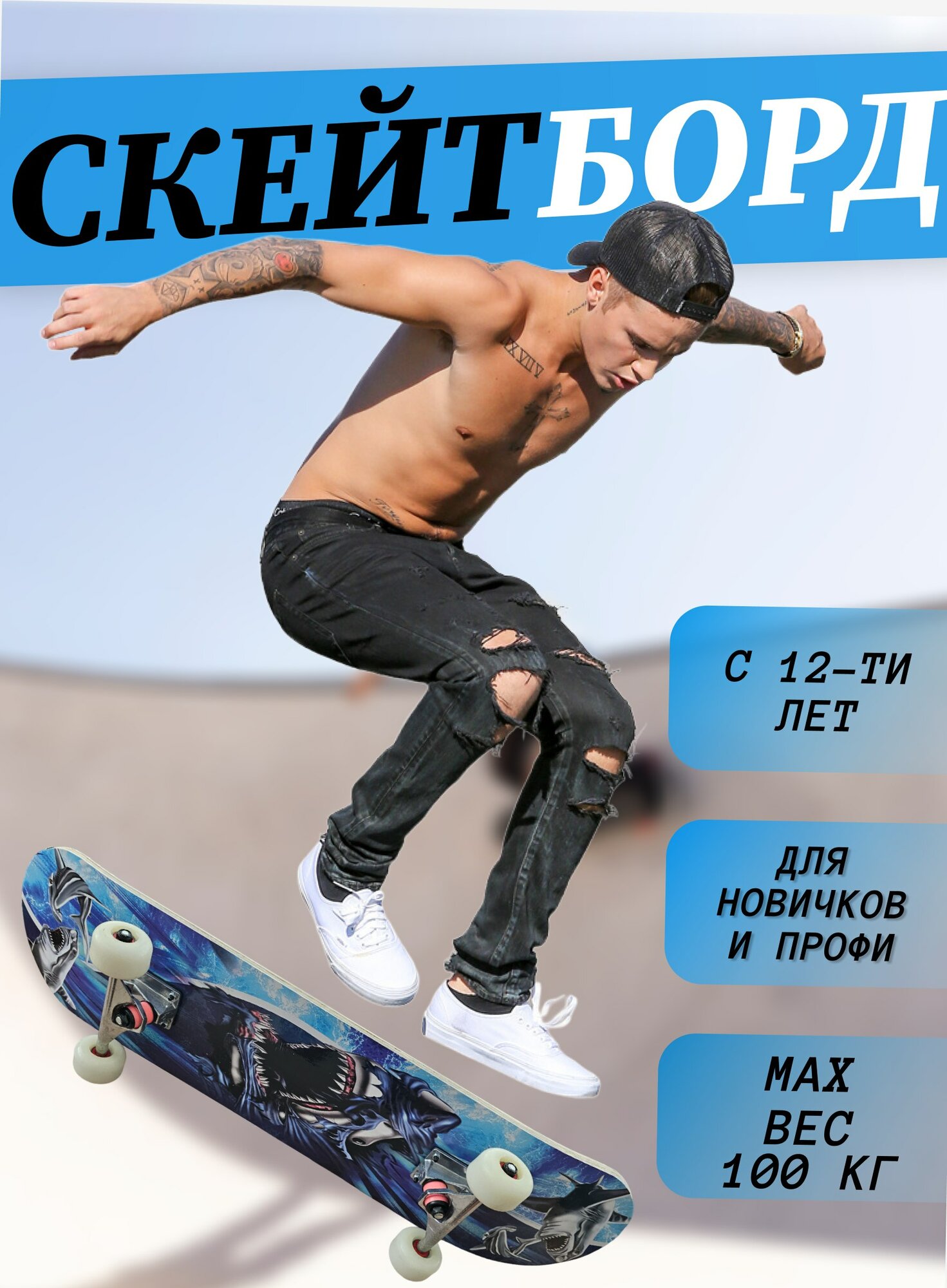 Ниже Вы можете прочитать отзывы на Скейтборд Shark, ознакомится с подробными характеристиками, посмотреть интересные обзоры и фотографии на Скейтборд Shark.