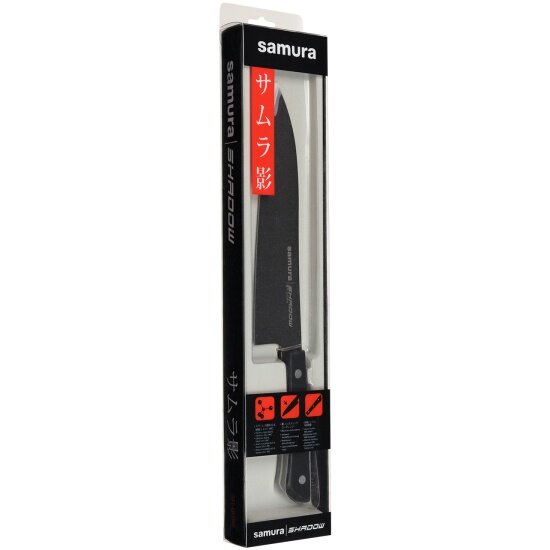 Купить Нож кухонный Гранд Сантоку SAMURA SHADOW с покрытием Black-coating, 197мм