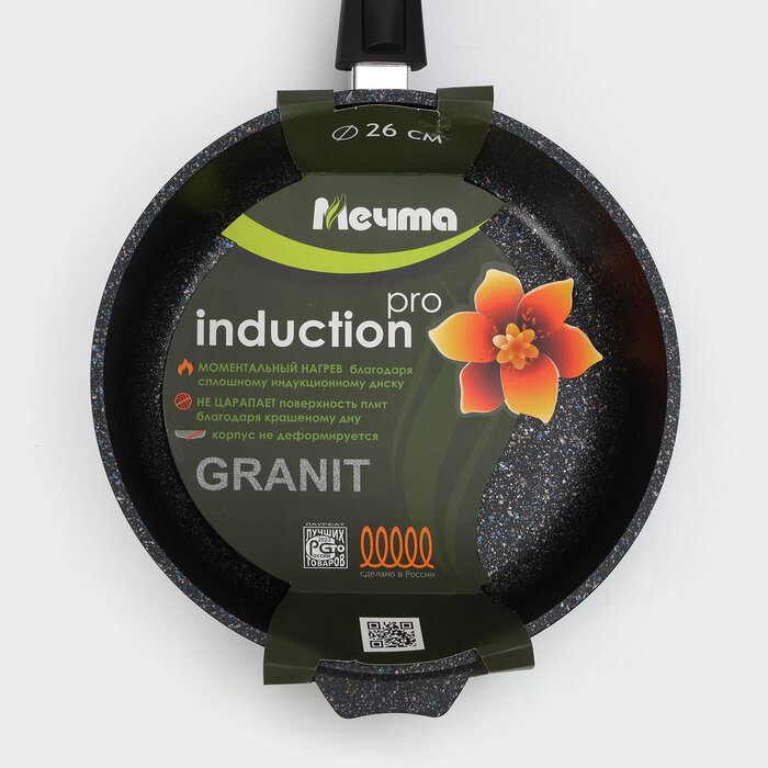 Мечта Сковорода Гранит black. Induction Pro, d26 см, съёмная ручка, антипригарное покрытие