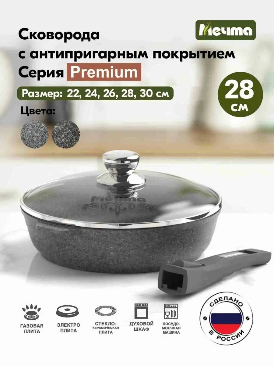 Сковорода Мечта Premium Grey 28см съемная ручка