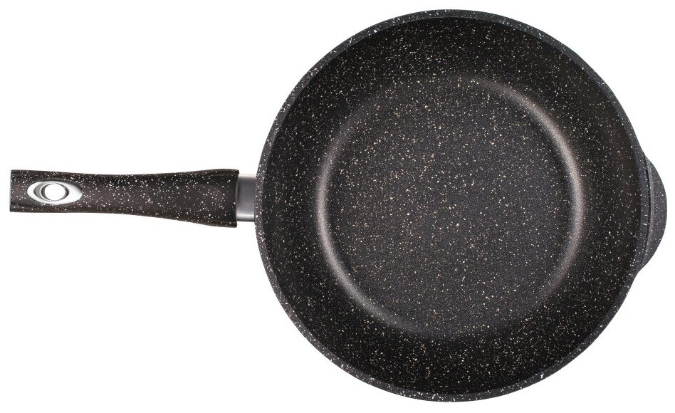 Сотейник серия "Гранит" диаметр 24 см высота 8.2 см с пластиковой несъемной ручкой без крышки антипригарное покрытие интересное: