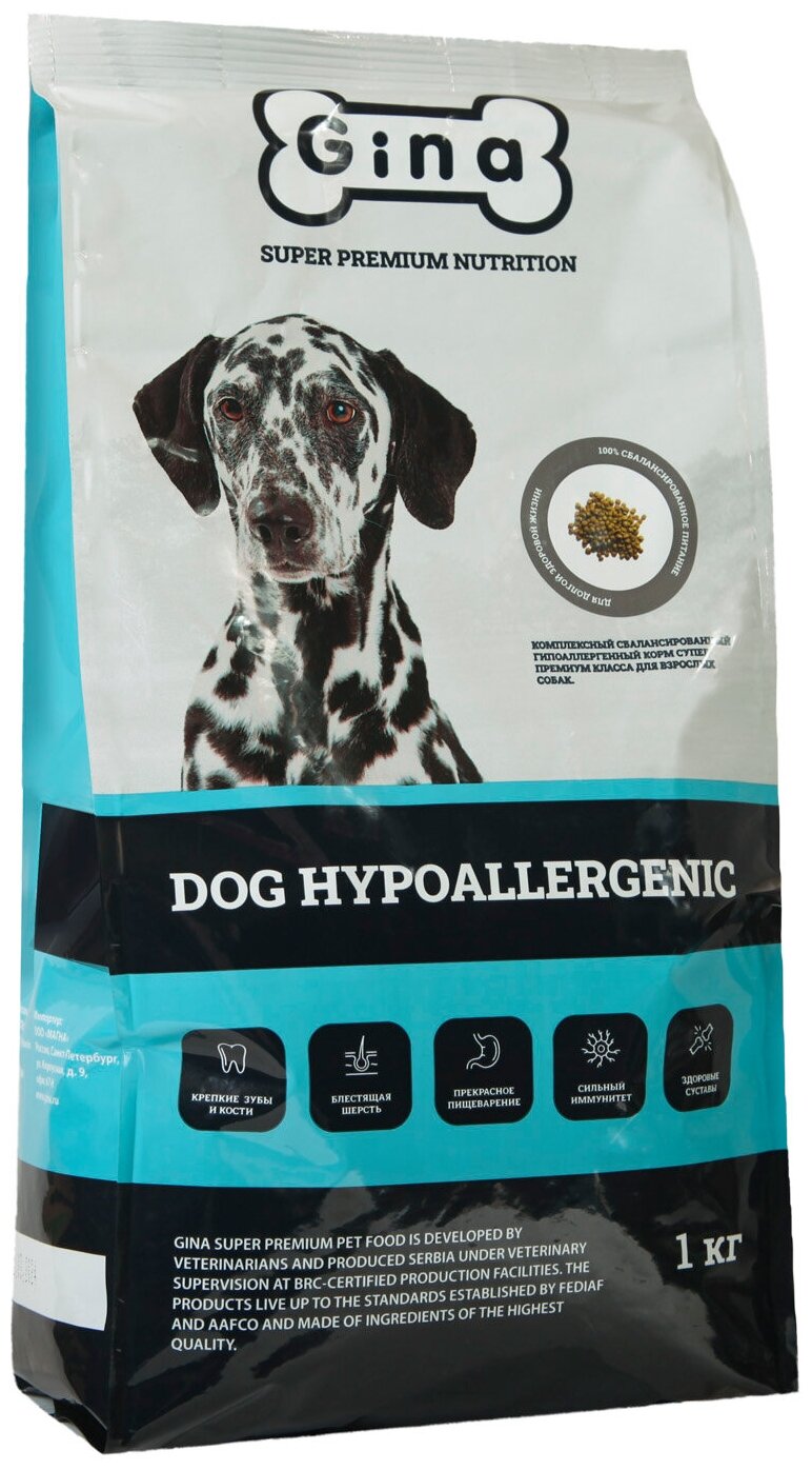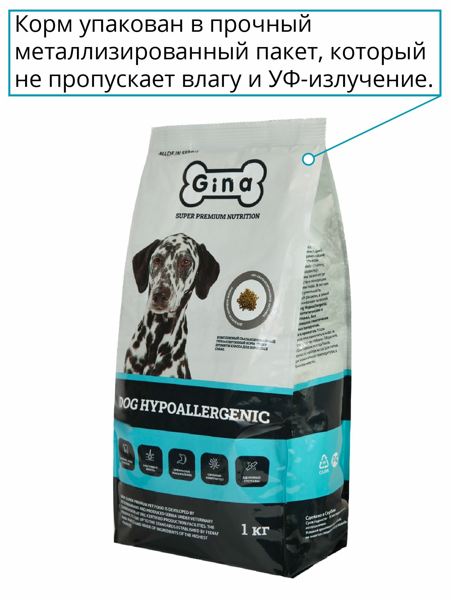 Купить Корм для собак сухой Gina Dog Hypoallergenic гипоаллергенный, индейка, утка, тунец 1 кг