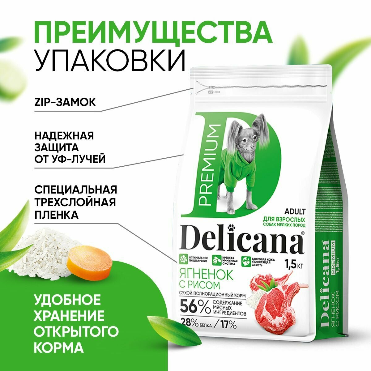 DELICANA Premium Сухой корм для собак мелких пород, курица с овощами, 1,5 кг