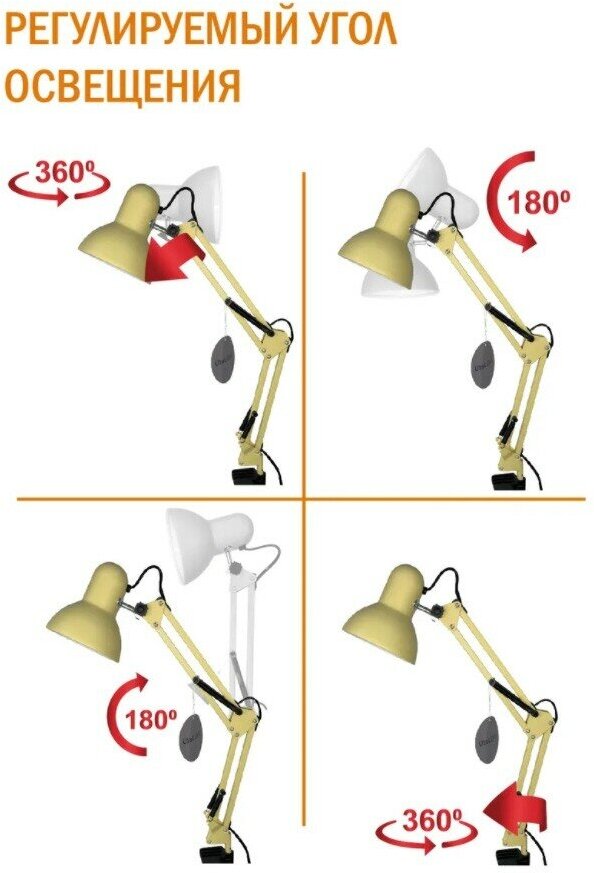 Купить Настольный светильник Ultra LIGHT МТ2001 сменная лампа, Е27, 60 Вт Основание + струбцина, Желтая ваниль