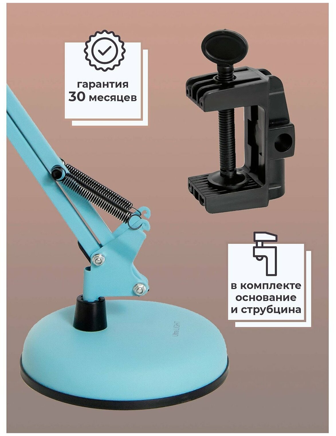 СохранитьНастольный светильник Ultra LIGHT МТ2001 сменная лампа, Е27, 60 Вт Основание + струбцина, Голубая лазурь интересное: